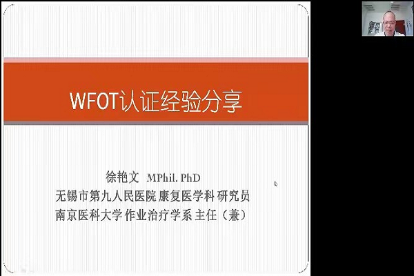 为促进我校作业治疗教育规范化建设并与国际接轨,以获得国际作业治疗师联盟(WFOT)的认证,5月10日下午,康复医学院邀请了南京医科大学作业治疗学系主任徐艳文教授进行线上学术交流并作《WFOT认证经验分享》专题报告。会议由康复医学院承办,教务处主办,康复医学院院长王锡臻主持,学院全体教师参加了本次会议。