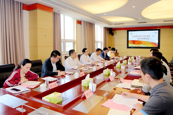 崔海晨对张建华一行表示热烈欢迎,全面介绍了山东鲁能足球学校的历史沿革、发展概况、近期大运会训练等情况,提出在运动损伤防护及康复等方面的实际需求。张建华介绍了我校的基本概况、发展历史、办学特色等情况,表示学校可利用在运动康复、心理健康、营养保健等学科专业方面的优势,发挥社会服务职能,加强双方合作,为运动队提供专业的康复与健康等服务。王世群表示,双方可进一步加强校际全面合作,通过多渠道、多层次、多形式的合作,有效实现党建业务双促双融。康复医学院负责人介绍了运动康复和康复治疗学专业的相关情况。随后,双方在教学科研、实习带教、就业创业、社会服务等领域进行了座谈交流。